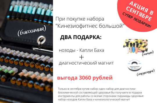 Приобретая набор "Кинезиофитнес малый" Вы не только становитесь обладателем универсального набора для теста биохимической составляющей треугольника здоровья, Вы получаете подарок для работы со структурной составляющей